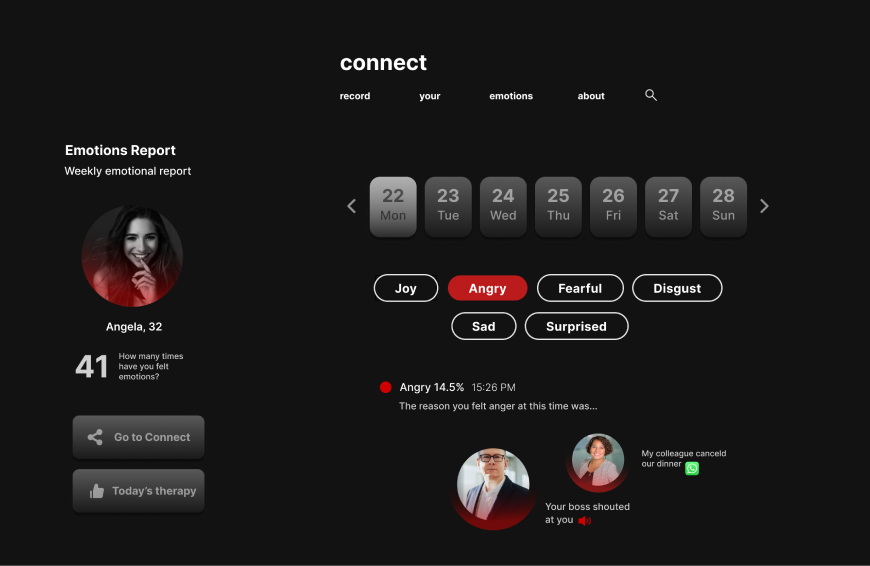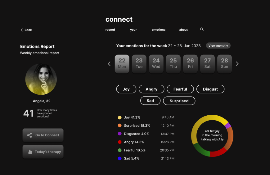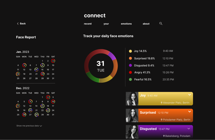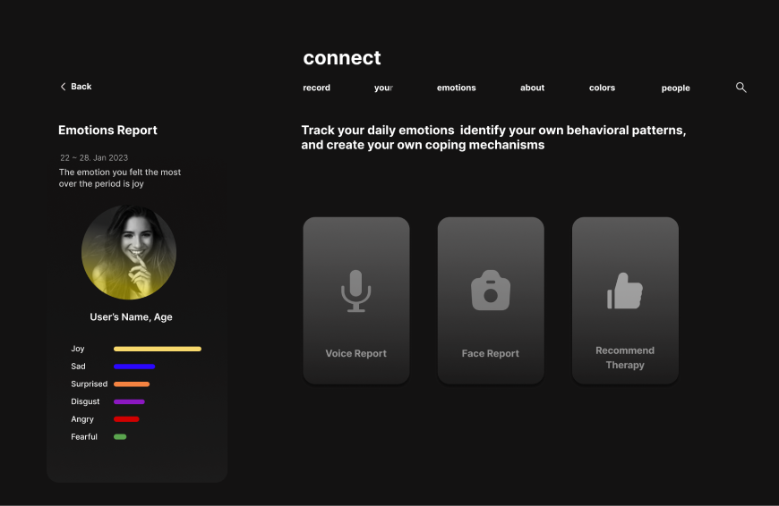 Data mirror as a concept help users can gain insight into their emotional state and potentially understand themselves better. Our platform acts as a mirror that reflects the different emotions of a person, similar to how a traditional mirror reflects their physical appearance. The goal of this data mirror is to promote emotional self-awareness and help users understand and manage their emotions more effectively.