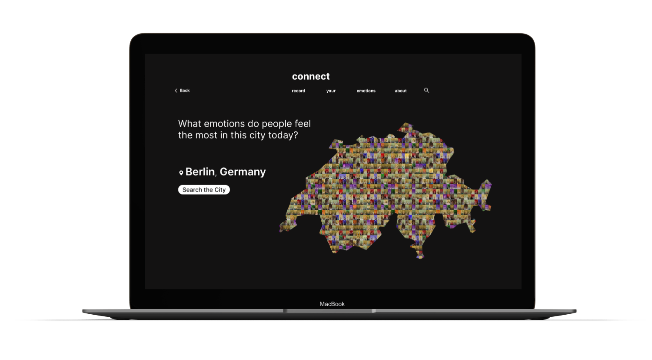 City maps display residents' emotions and enable sharing, fostering emotional awareness and social interaction.