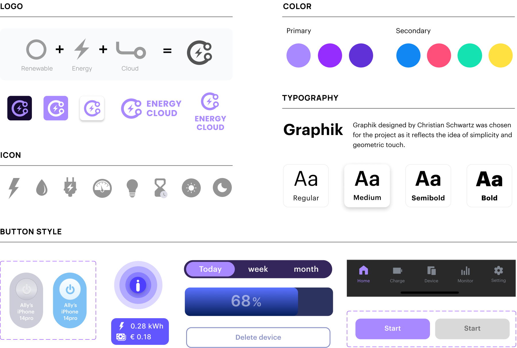 Created a style guide and UI components. This app is an application designed to check real-time power. Therefore, we mainly used reasonable and strong colors that can express shapes and graphs prominently.