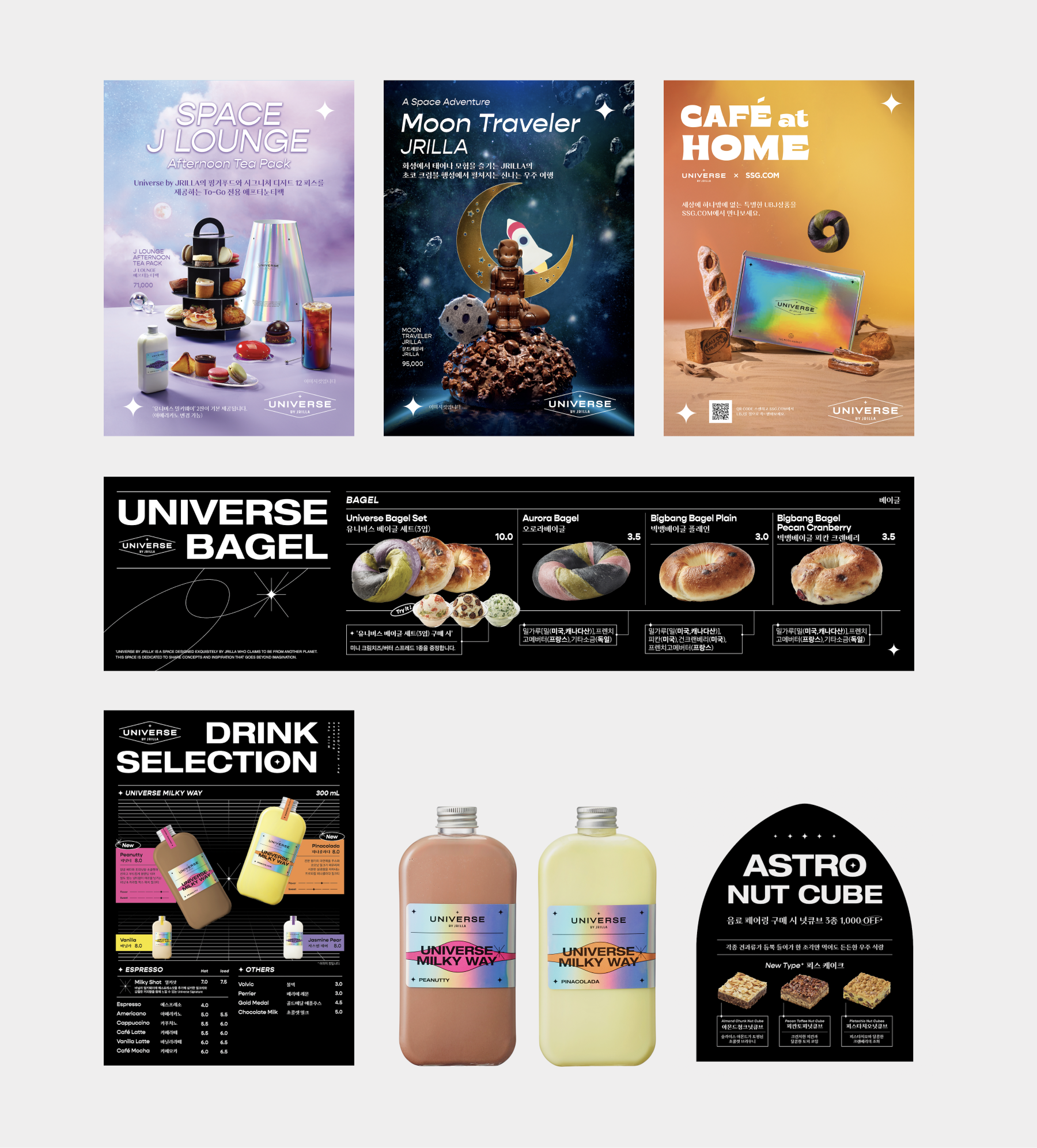 UNIVERSE by Jrilla was designed with the concept of creating a new style of bakery project space that has never been seen on Earth. It draws cosmic inspiration from 'Jrilla' on Mars. The futuristic interior, which immerses visitors in a spaceship-like atmosphere, and the brand identity with holographic patterns provide everyone who visits with a unique space experience