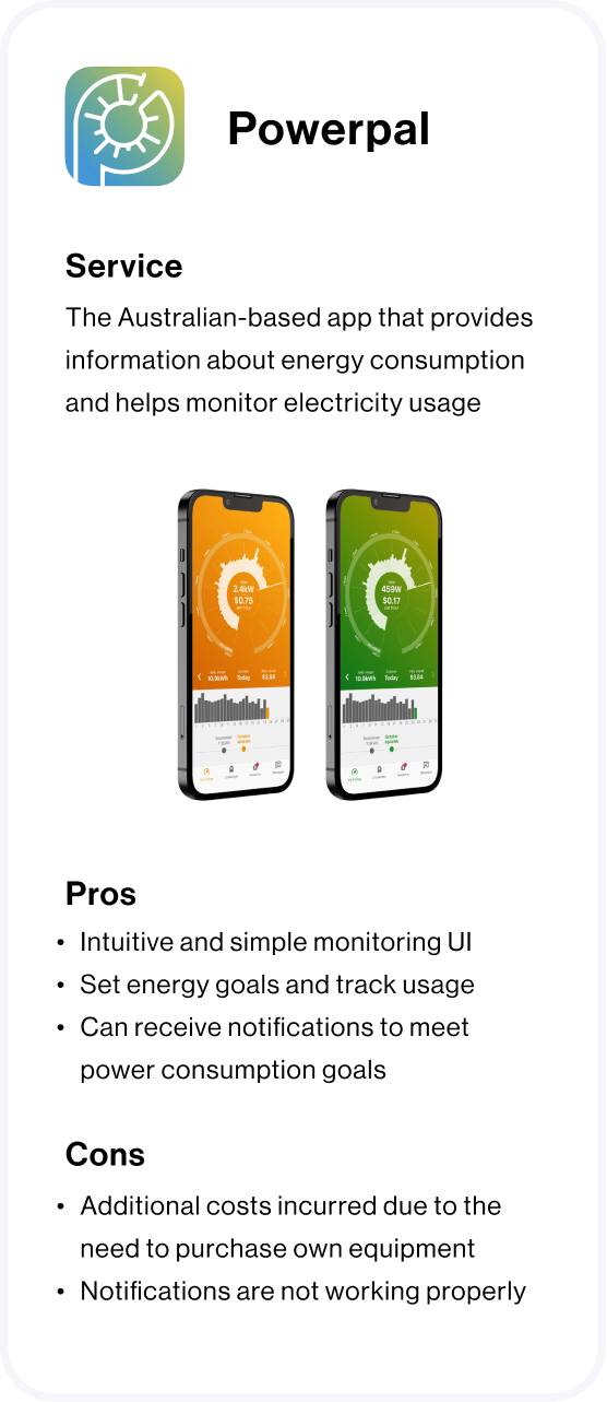 I analyzed five apps, each with a distinct concept related to energy usage and I found that scarcely any of them provide AR feature. This then became my opportunity for the solution.