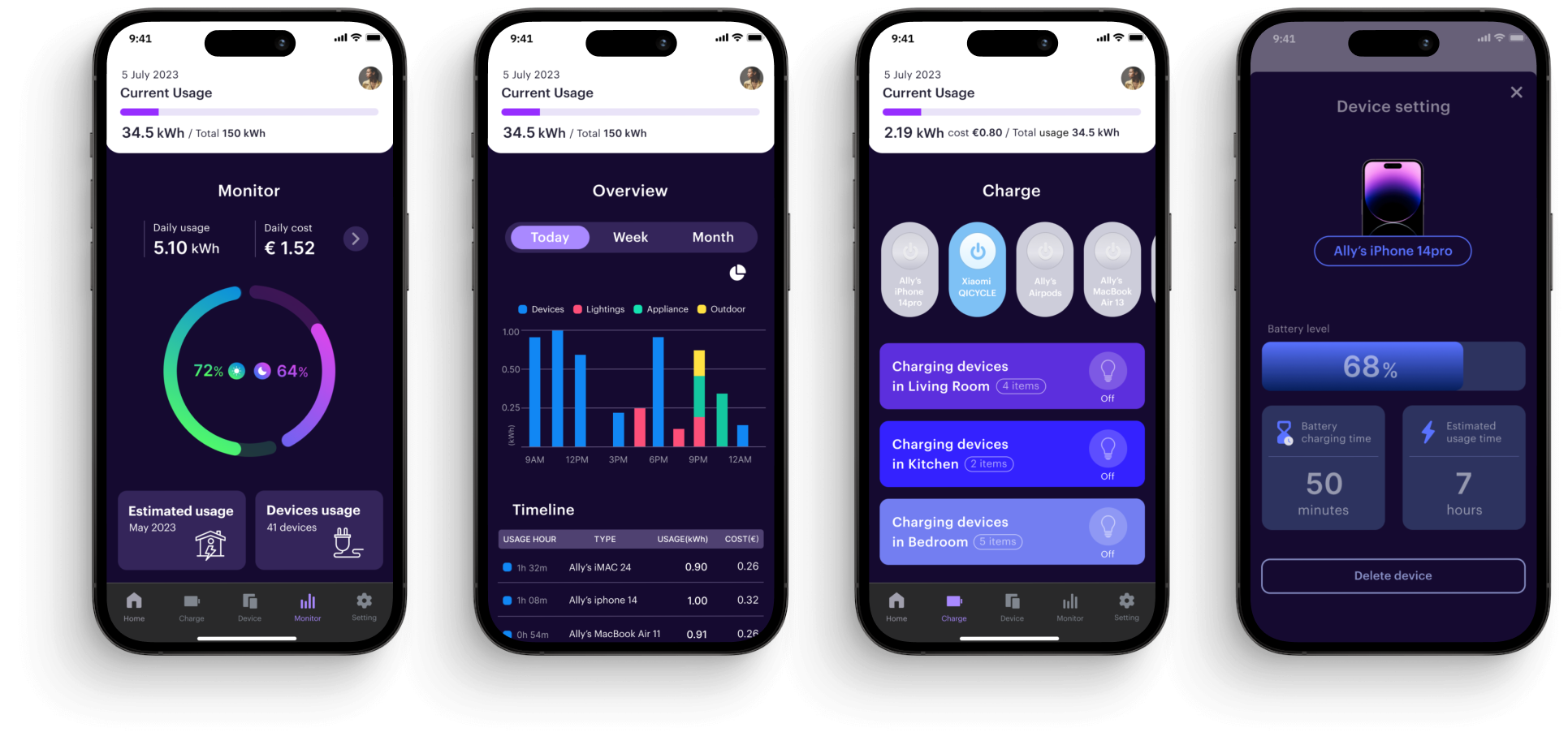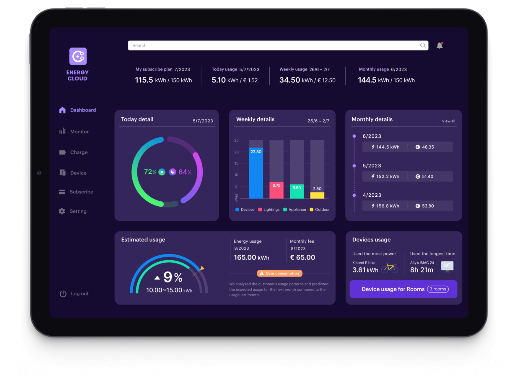 Through user research and interviews, I found out that users mainly want to monitor electricity consumption on a larger screen than mobile apps, so I added a dashboard platform to the service.